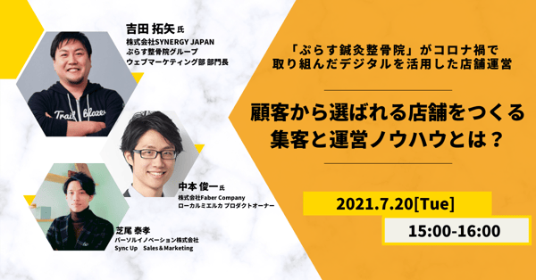 2021年7月20日(火)に「ぷらす鍼灸整骨院」がコロナ禍で取り組んだデジタルを活用した店舗運営!顧客から選ばれる店舗をつくる集客と運営ノウハウとは?」というテーマで、セミナーを開催いたします